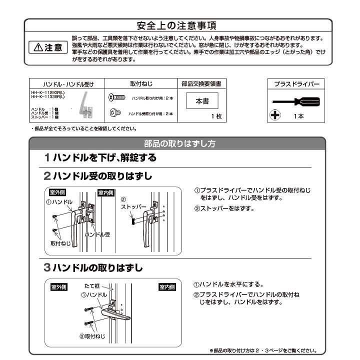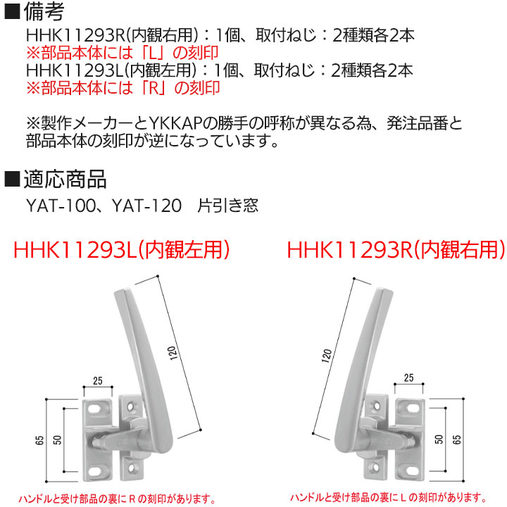 YKK AP HHK11293R HHK11293L 純正品 【交換要領書付き】 ハンドル YKK ワイケーケー サッシ 部品 HHW-HHK11293R HHW-HHK11293L ハンドル受け YAT-100 YAT-120