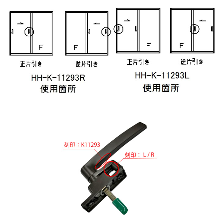 ■品番:HHK11293R:内観右用(※ハンドル及び受け部品の裏側にLの刻印があります。)