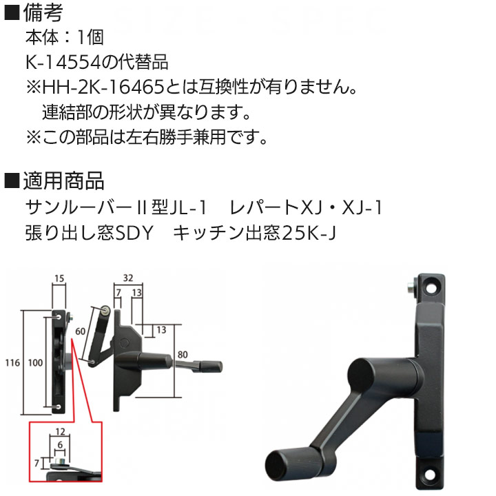 YKK AP HHK17089 純正品 オペレーターハンドル YKK ワイケーケー サンルーバー 窓補修用 張り出し窓 キッチン出窓25K-J 左右兼用 K-14554 K-17089