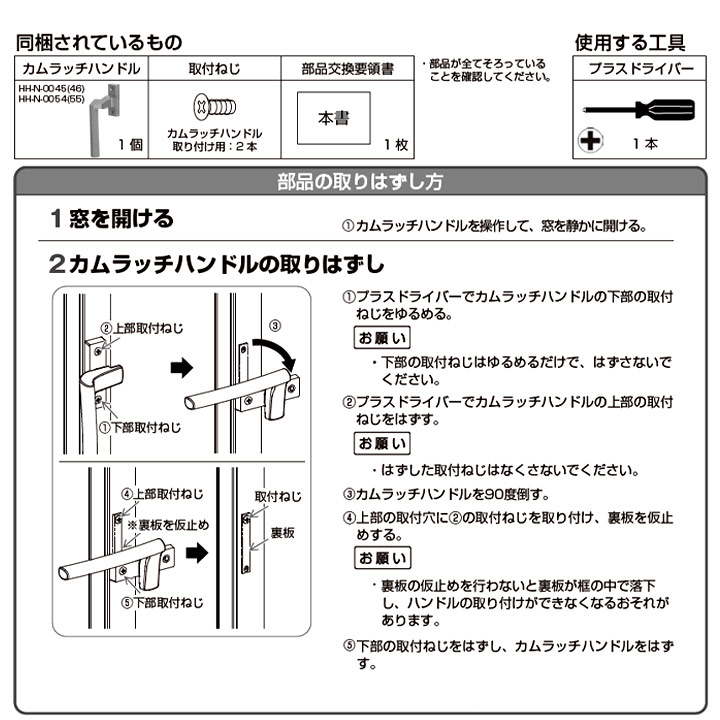 YKK AP HHN0054 HHN0055 純正品 【交換要領書付き】 カムラッチハンドル YKK ワイケーケー サッシ 部品 2K-12764 2K-12765 HH-N-0054 HH-N-0055