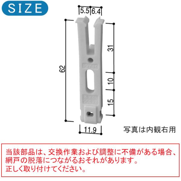 当部品は、交換作業および調整に不備がある場合、網戸の脱落につながるおそれがあります。