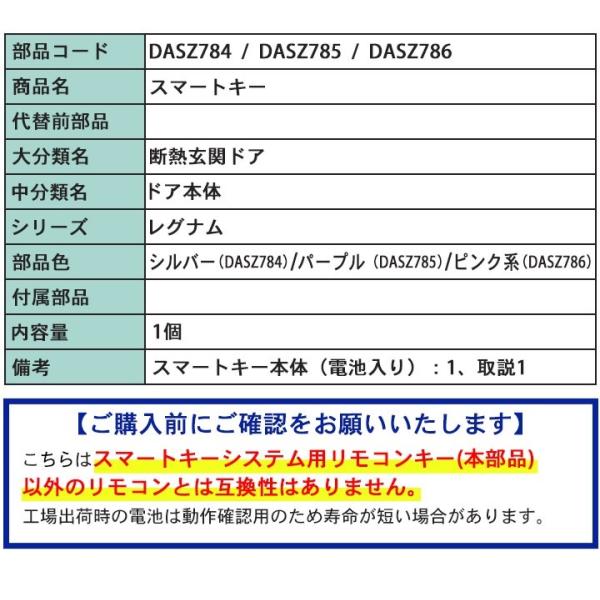リクシル トステム スマートキーシステム用リモコンキー <交換手順書付> DASZ784 DASZ785 DASZ786 玄関ドア部品 LIXIL TOSTEM タッチキー システムキー