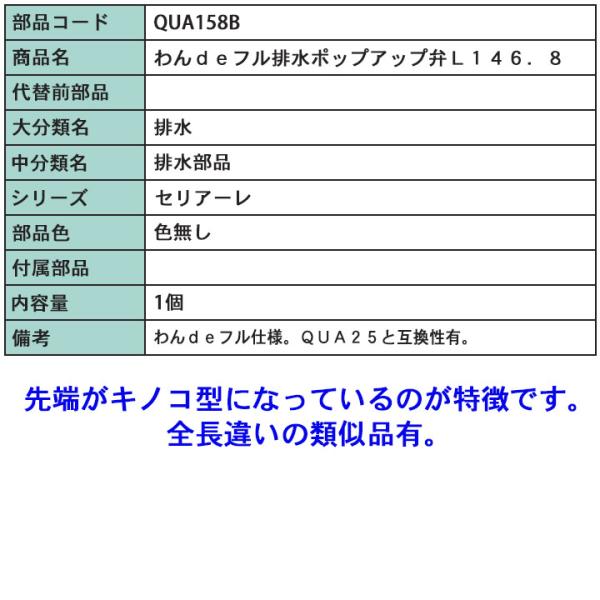 LIXIL トステム QUA158B わんdeフル排水ポップアップ弁L146.8 TOSTEM トステム 洗面化粧台 排水部品 ポップアップ弁 シンク 洗面 部品 ゴミキャッチ 消耗品 取替