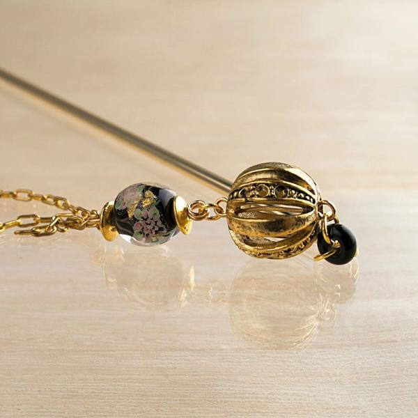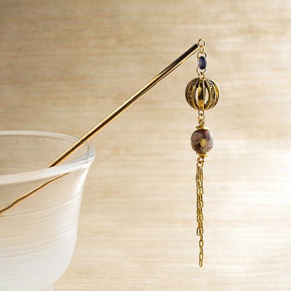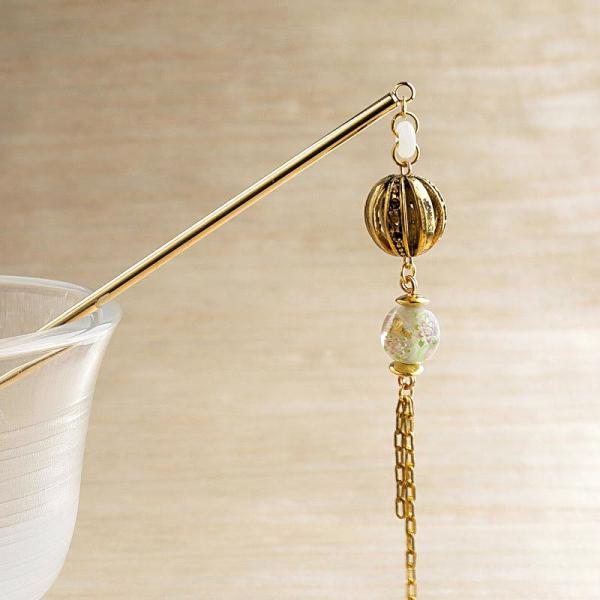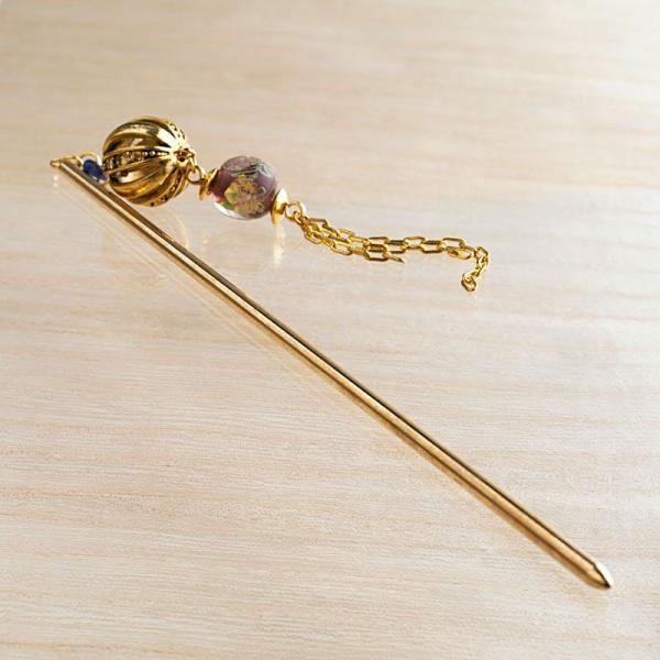 かんざしI(ゴールド)、チェーンNAM04(ゴールド)、無地丸そろばん6mm