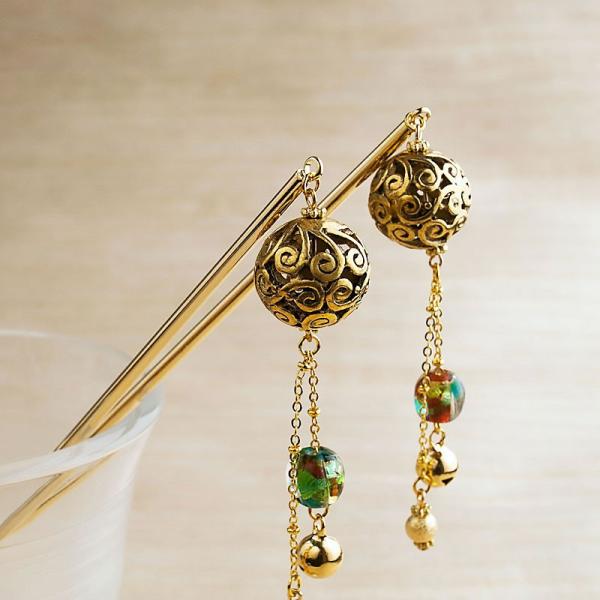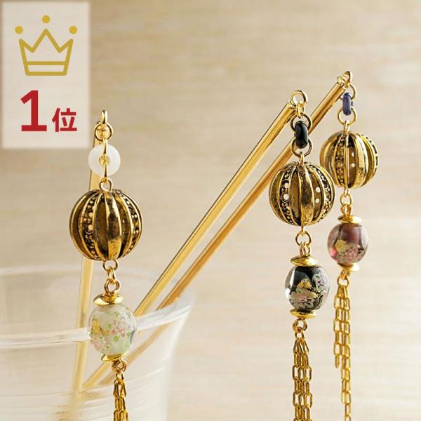 「金彩 2 mini かんざし 01」かんざし シンプル 一本 花 和装 とんぼ玉 簪 和装 ゴールド