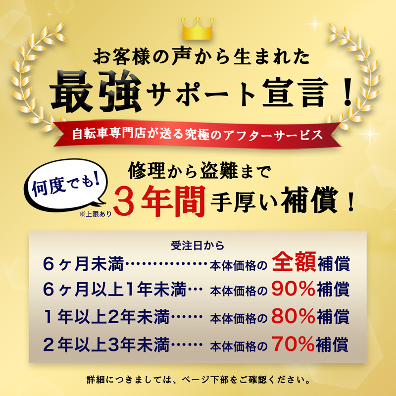 ※乗車適応身長はサドルに跨った状態で両足のつま先が接地できる身長を指します。