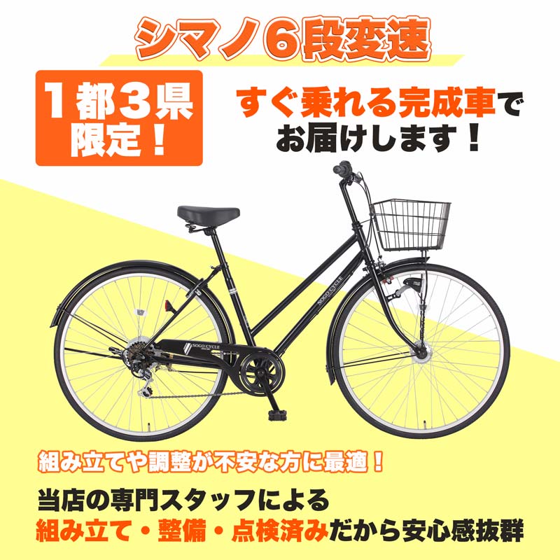 自転車 完成車 完成品 1都3県限定 完成品でお届け 組立不要 100%完成車 本体 27インチ シマノ製6段変速 シティサイクル 通勤 通学 送料無料 〔KACTA276〕