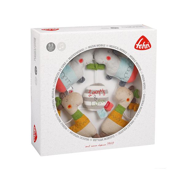 \おまけ付き/ドイツ fehn(フェーン)社 オルゴールメリー・ロッピーアンドロッタ ベッドメリー 動物 ソフトトイ 布おもちゃ 出産祝 ベビー玩具 おうち時間