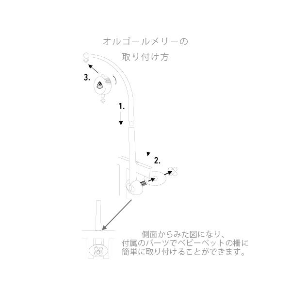 ゼンマイじかけのオルゴールが付いているベッドメリーです。