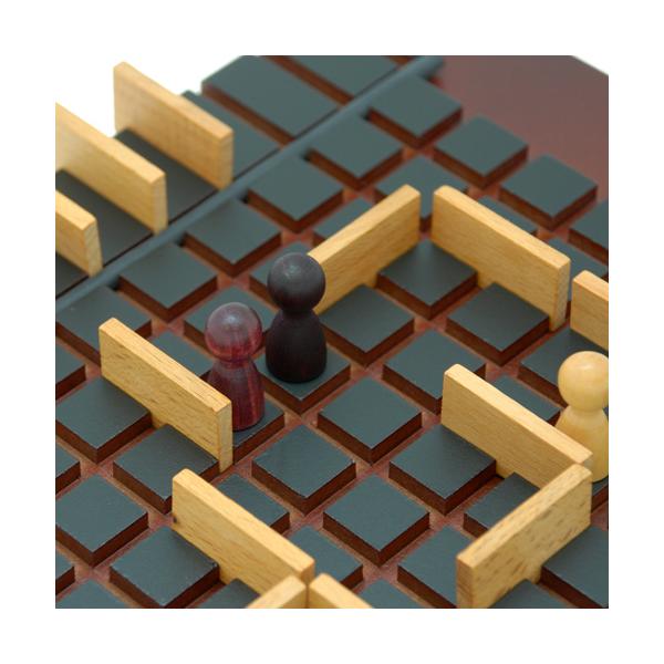 コマを1マス進めるか、フェンスで相手の進路を妨害するかを選択し、自分のコマをより早く向かい側のゴールまで進めるボードゲームです。