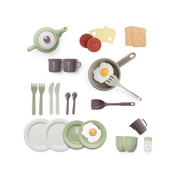 北欧デンマークで作られている、洗練された色使いと本物の食器に近いデザインで、2人用の食器と朝食の食材のセットです。