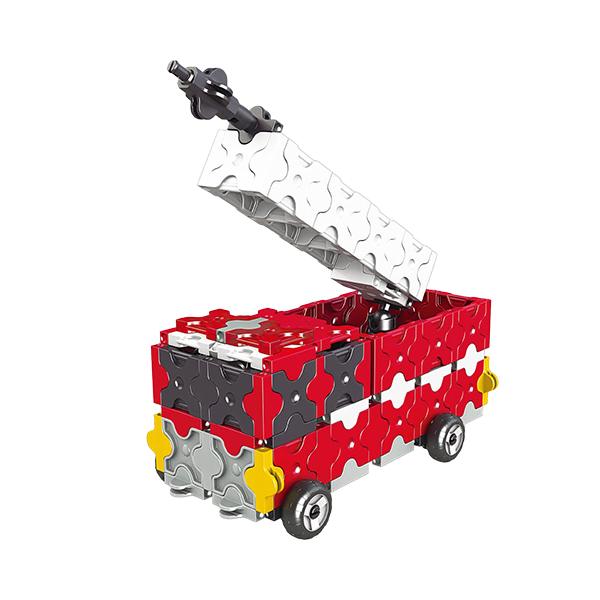 「消防車」はボールジョイントパーツを使ってハシゴが可動するギミックつきです。