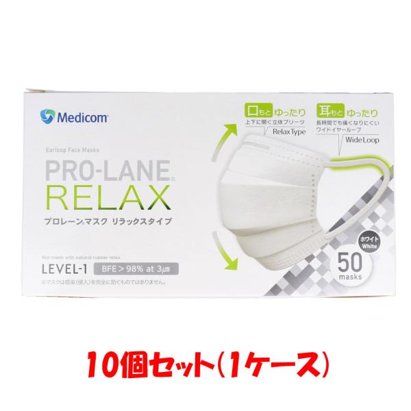 メディコム プロレーンマスク リラックスタイプ ホワイト 50枚入×10個セット