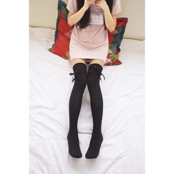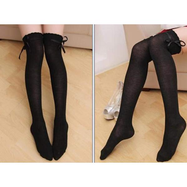 女の子らしいデザインのサテンリボン付きレディースニーハイソックスです。