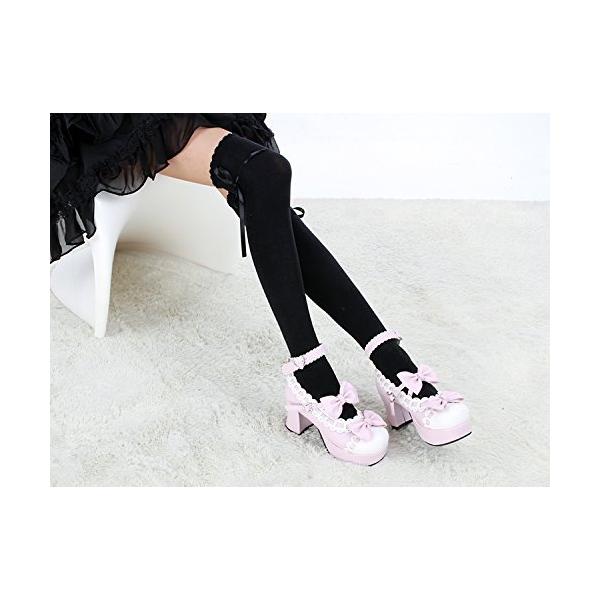 レース付きニーハイ ストッキング ロリ系 コスチューム用小物 ブラック
