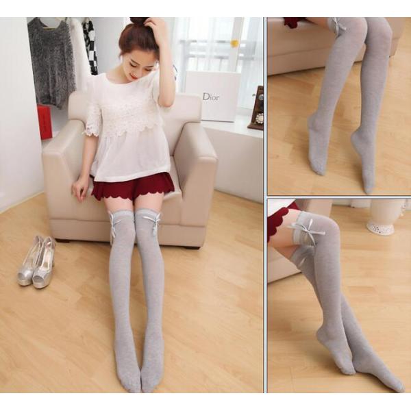女の子らしいデザインのサテンリボン付きレディースニーハイソックスです。