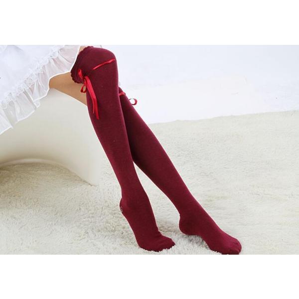 女の子らしいデザインのサテンリボン付きレディースニーハイソックスです。