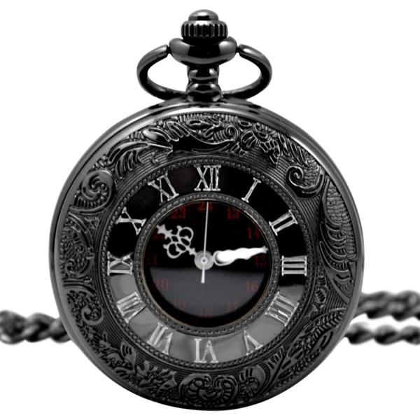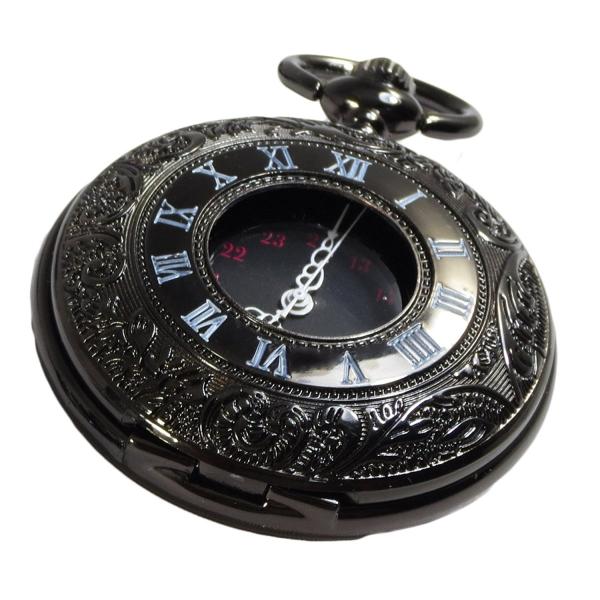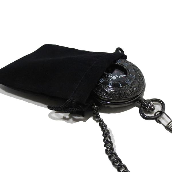 【黒の懐中時計】 アンティーク 懐中時計 【収納ポーチ + 専用箱 付き】レトロ ブラック クローム