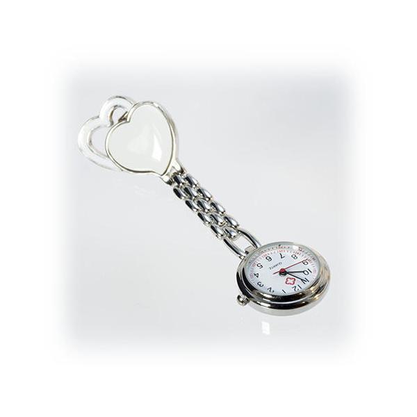 ナースウォッチ かわいいハート柄 クリップ式 逆さ文字盤 ホワイト
