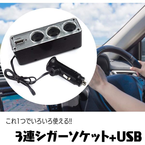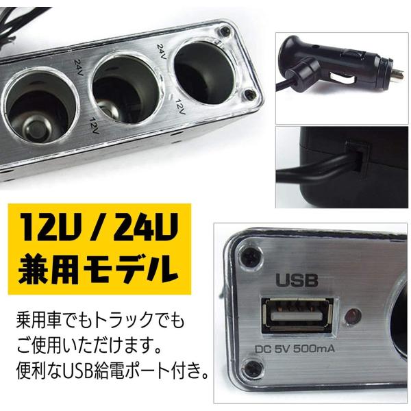シガーソケット チャージャー 3連 (12V/24V 対応)ライター USB ポート 付き 使える 便利 USB