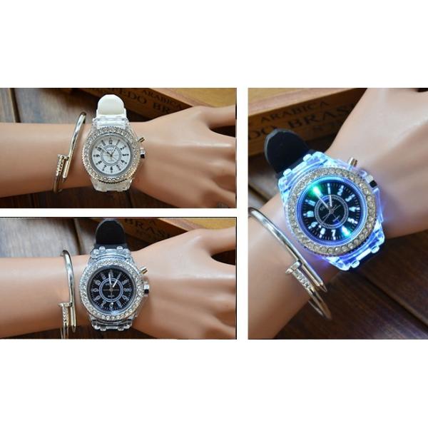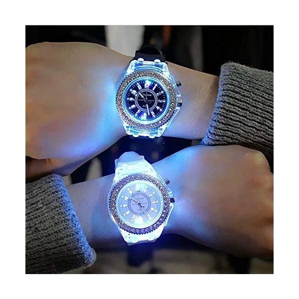 光る腕時計 スポーツ 光る レインボーLED腕時計 7色にフラッシュ発光