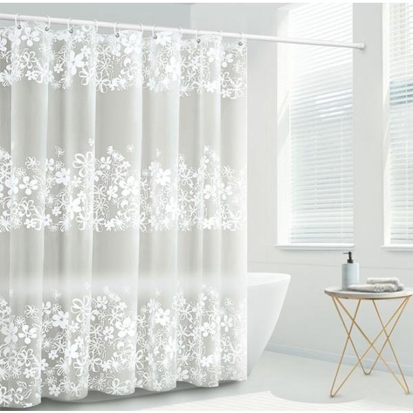 【120×180cm】シャワーカーテン 浴室風呂カーテン 子供部屋 間仕切り 白い花 防水速乾 防カビ 保温抗菌 カーテンリング付 加工取り付け簡単 送料無料