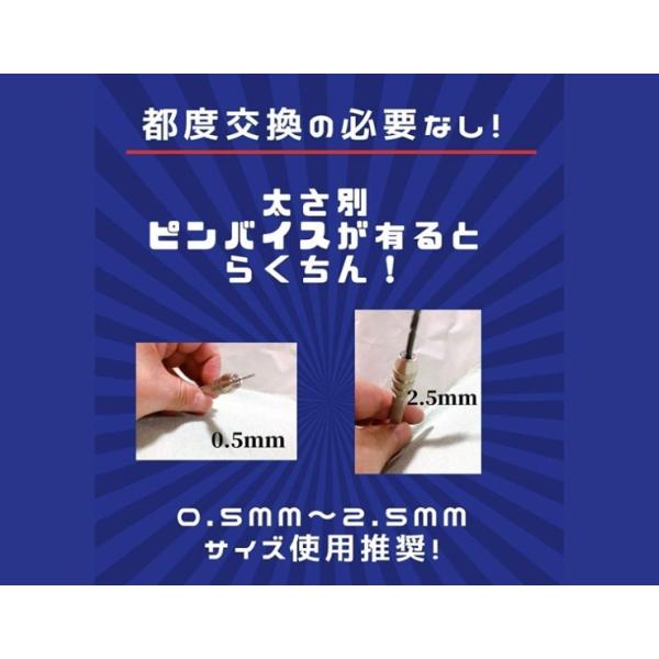 ピンバイスをビットブレードやスジボリカーバイト用に使用すると便利です。このピンバイスは軸径0.5mm〜2.5mmのドリルビットやカーバイトに適しています。