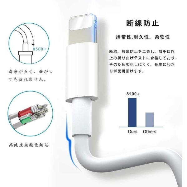 2本セット iPhone用充電ケーブル ライトニングケーブル 1M 急速充電 断線防止 超高耐久 柔軟性 標準仕様 高速データ転送