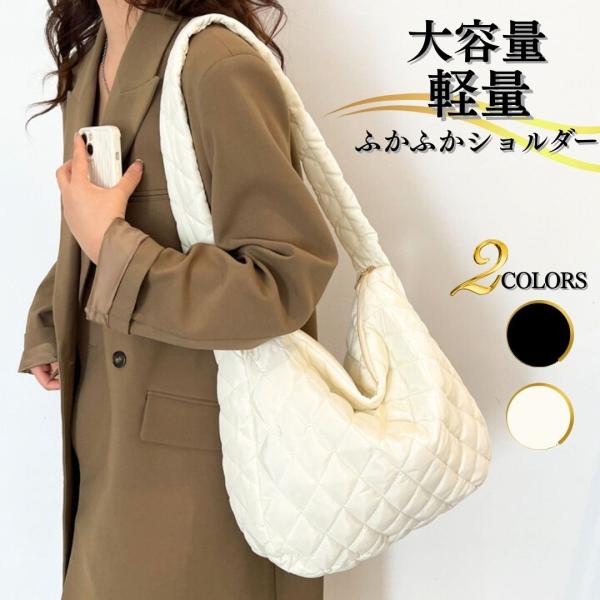 ショルダーバッグ キルティング ふかふか 軽量 大容量 ワンショルダー ホーボー レディース 肩掛け 2色 38cm