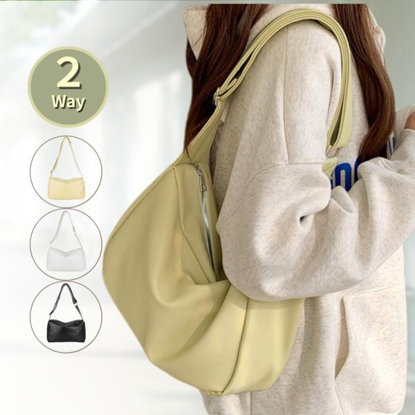 ショルダーバッグ レディース 2WAY 斜めがけ ワンショルダー 合皮 軽量 シンプル 韓国 黒 白 イエロー 通勤 通学 ラジオショルダーバッグ