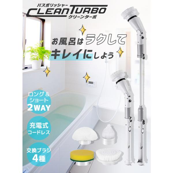 浴室ブラシ ターボプロ お風呂スポンジ お風呂 床 掃除 バスポリッシャー コードレス 電動 充電 伸縮 電動ポリッシャー 1年間保証付き 送料無料