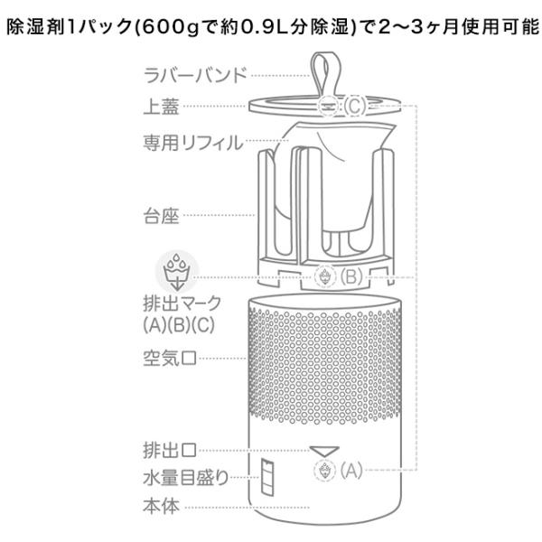 除湿剤1パック(約600g)で約0.9Lの除湿が可能。2〜3ヶ月間程度使用することができます。