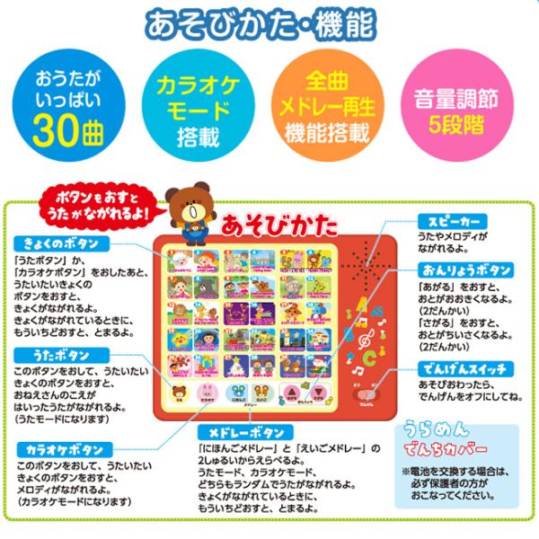 【仕様】[電源]単4アルカリ乾電池×2本 [対象年齢]1〜5歳 [音量調節]5段階