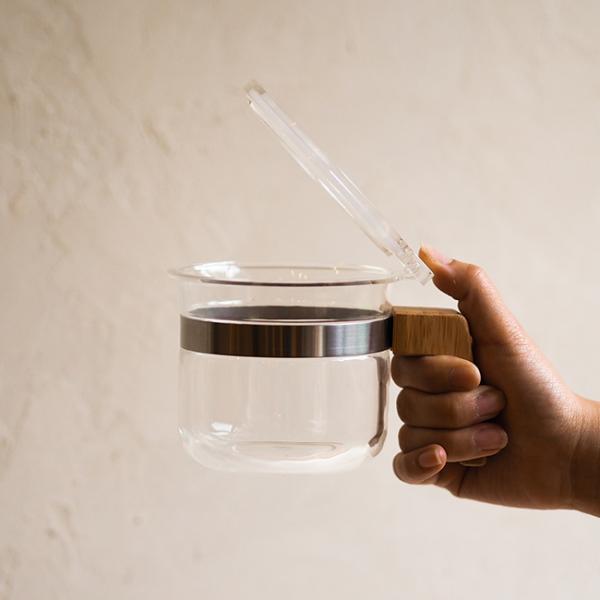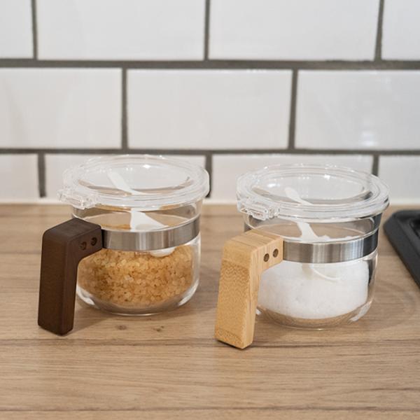 biite ビッテ パウダーポットバンブー(調味料入れ おしゃれ ガラス みたい 透明 キャニスター クリア 木製 ハンドル)