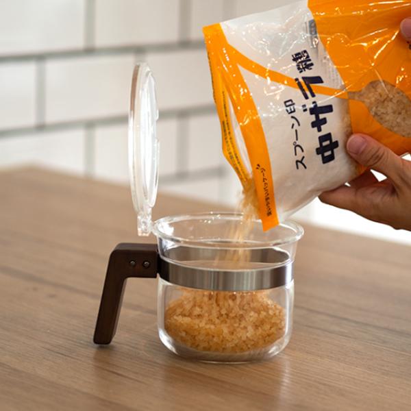 広口設計で詰め替えがしやすく、底面が丸みを帯びているため調味料を最後まで無駄なく使い切ることも◎。