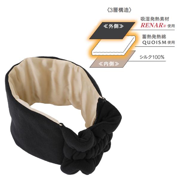 外側は吸湿発熱素材「RENAR(R)」、間の層には蓄熱発熱綿「QUOISM」を使用しており、一日働いた眼をじんわり温めることができます。