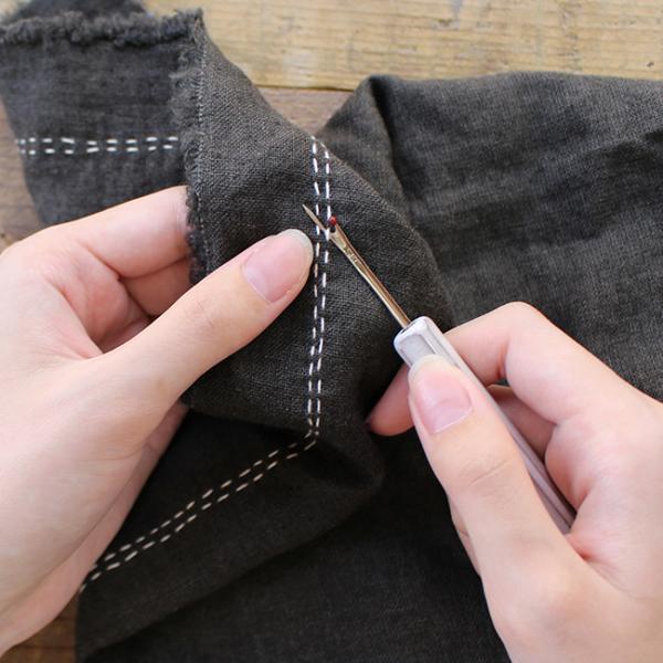 縫い目の糸きりやボタンホールの穴あけに活躍するリッパー。持ち手は淡路瓦で仕上げています。