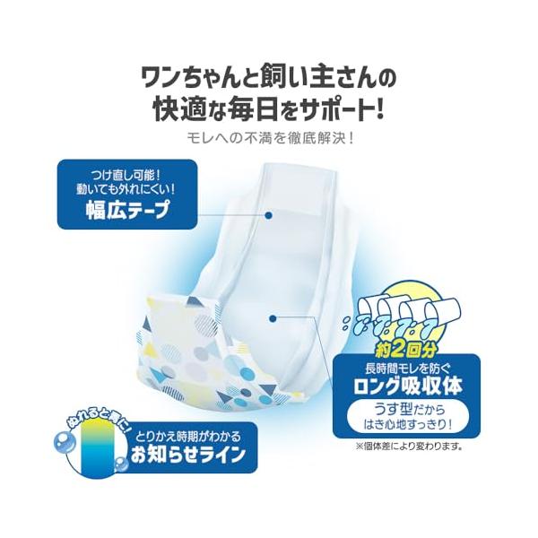 ・ワンちゃんと飼い主さんの快適な毎日をサポート!モレへの不満を徹底解決!長時間モレを防ぐロング吸収体全方位カバーで横モレも防ぐ!