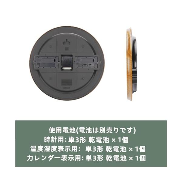 ・電池:単3形 乾電池(1.5V)3本(別売)(時計、カレンダー表示、温度湿度表示にそれぞれ使用)●充電式電池は使えません。