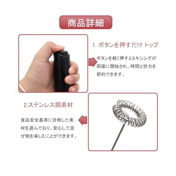 ・?ヒューマンエンジニアリングデザイン軽量かつ人間工学的ハンドル。22cm長で75gの軽さ。15?20秒で豊かな泡が作成されます。お手入れも簡単で、泡立て器の頭を水に入れてすすぐだけです。