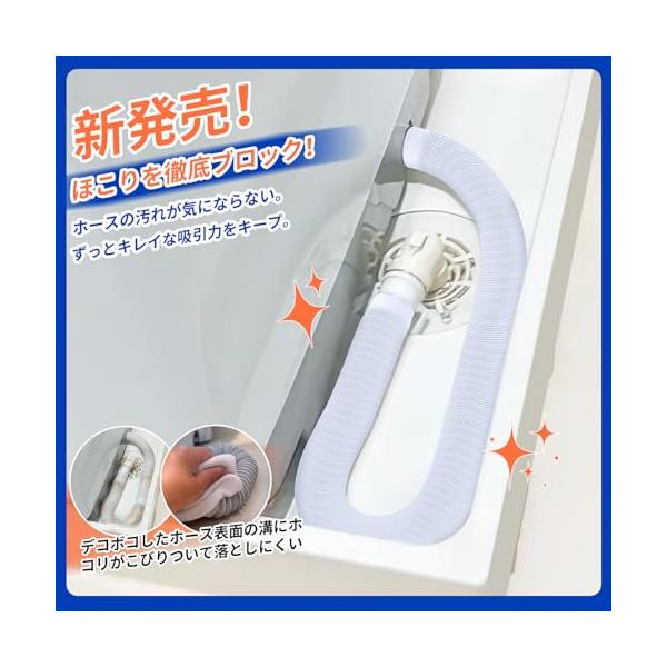 ・ほこり防止洗濯機 ホースカバーの細かい網目がほこりをしっかりガードするから、 蛇腹のホースの掃除の手間が減ってストレス減ります。