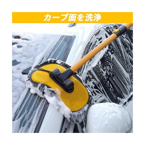 ・ヘッド角度自動調整ヘッドブラシの自動調整機能で、洗車を効率的に行えます。ヘッド角度が自動調整なため、洗車がもっと簡単になります。モップは取り外して洗って再利用できます。