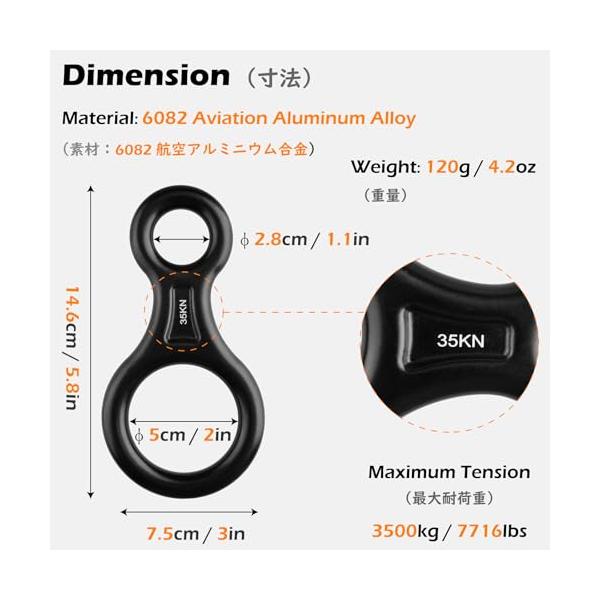 ・?対応ロープ8-13mm。表面はアナダイズ処理を施し、作業時にロープとデバイスの擦れることを最大限に防ぎ、ロープを傷めなく、指を火傷から守ります