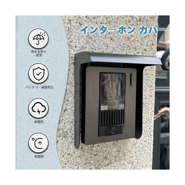 屋外インターホンカバー 玄関ドアホン雨よけ ワイヤレスドアホン日除けカバー 超硬質メタル 取り付けが簡単(ブラック)