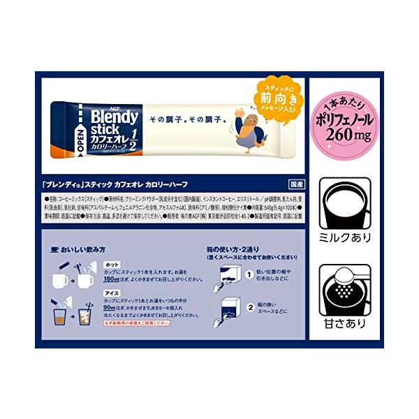 AGF ブレンディ スティック カフェオレ カロリーハーフ 100本 スティックコーヒー 糖質オフ