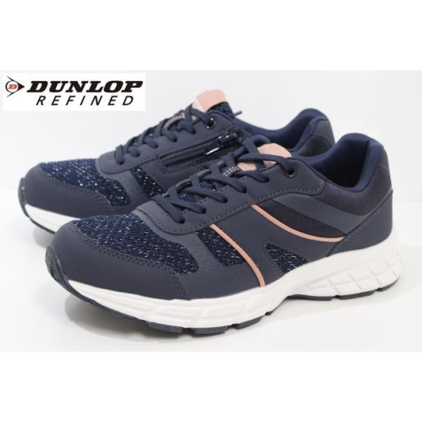 ダンロップ リファインド レディース スニーカー ファスナー付き 4E DUNLOP REFINED DM2506 NAVY