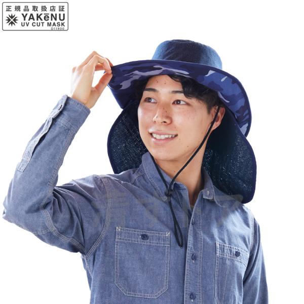 UVカット帽子 紫外線 日焼け防止 熱中症対策 遮光 外せるケープ付 涼かちゃん 迷彩テンガロンハット Lサイズ 882