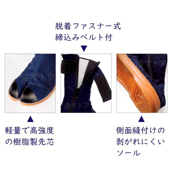 地下足袋 安全靴 ツインフーブス 藍染 27cm ファスナー脱着式 樹脂製先芯入 作業靴 荘快堂 TH-340F