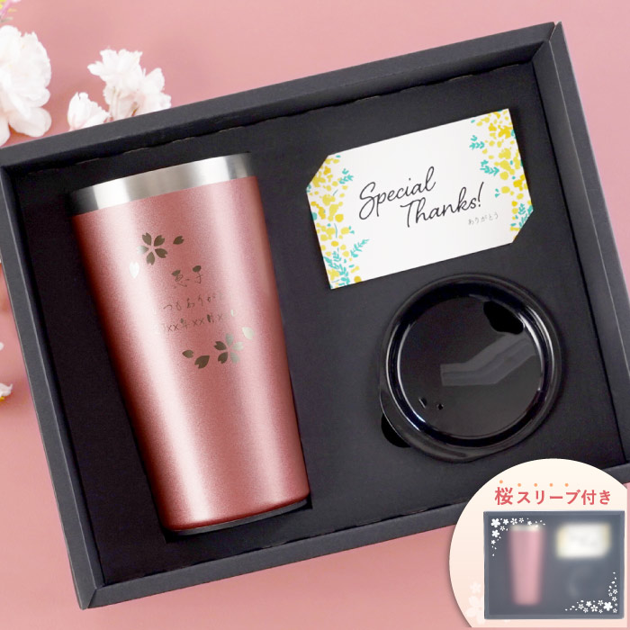 退職祝い 男性 60代 記念品 タンブラー 蓋付き 保温 保冷 名入れ プレゼント 名前入り ギフト 真空断熱 ステンレス 桜 日本語 450ml 定年退職 還暦祝い