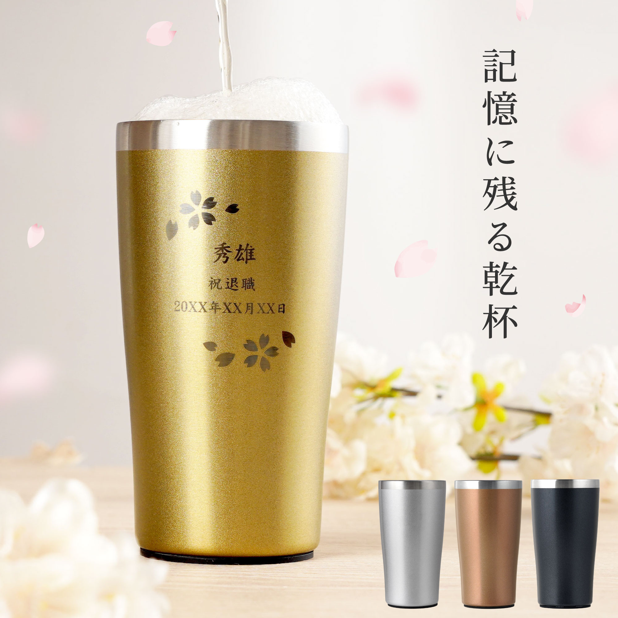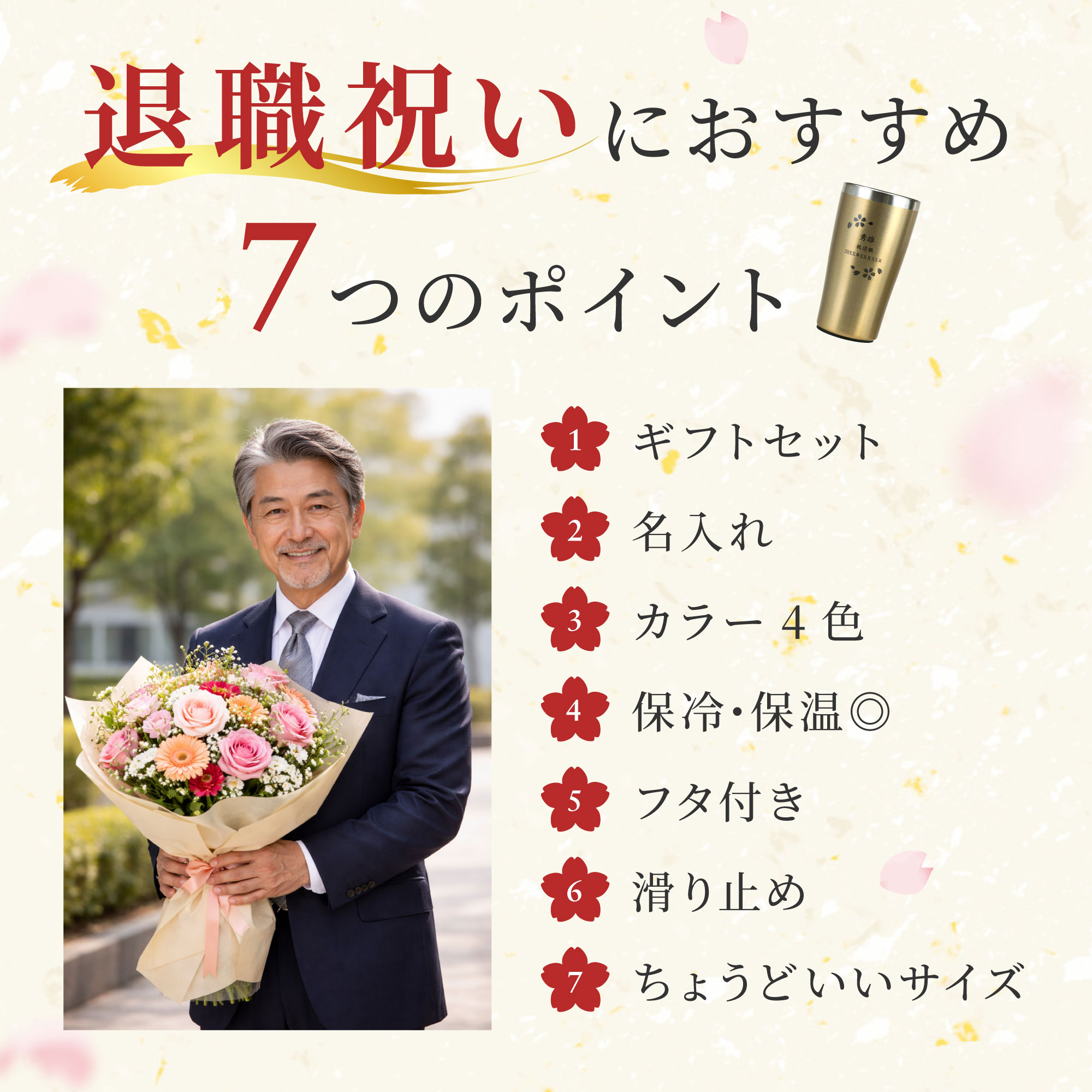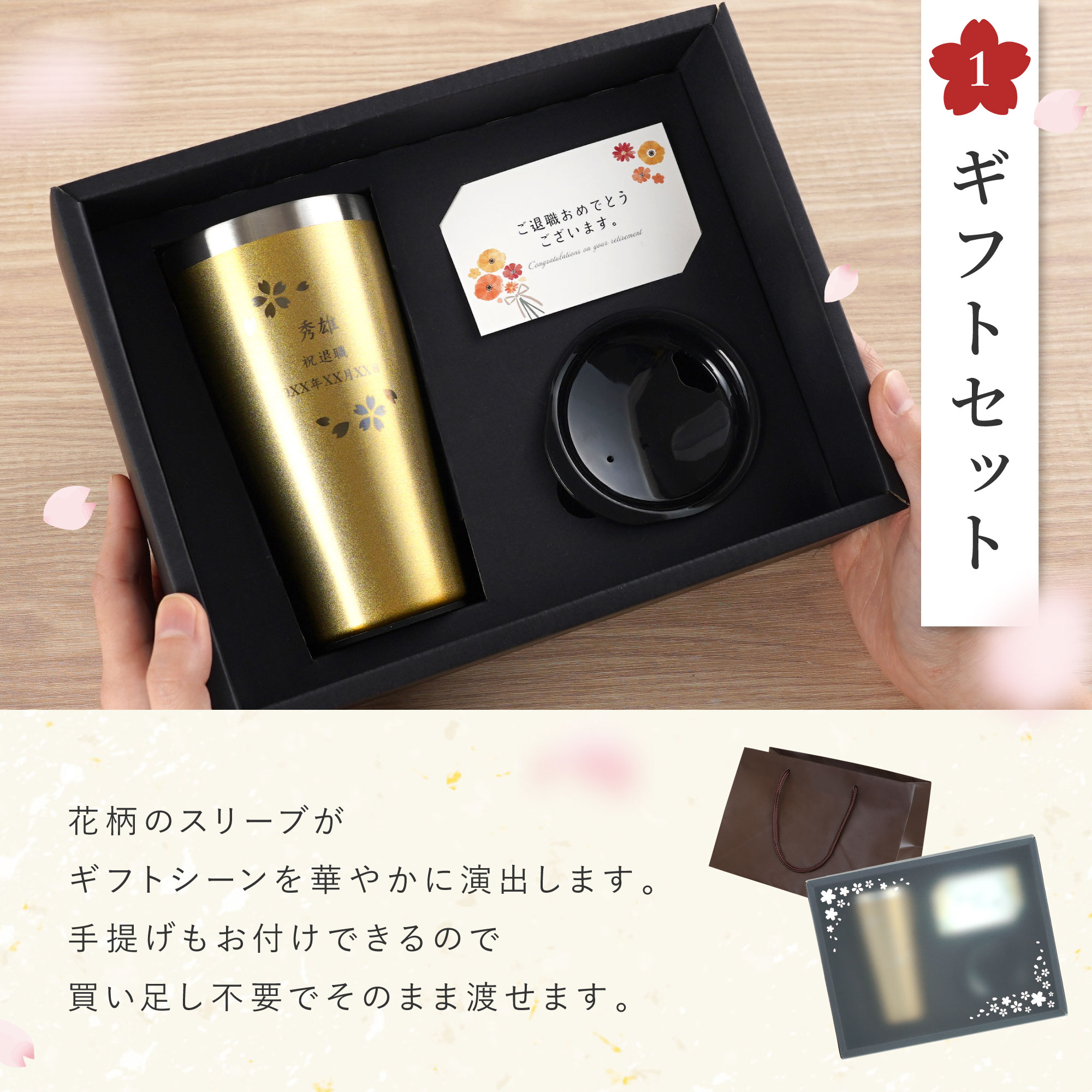 退職祝い 男性 60代 記念品 タンブラー 蓋付き 保温 保冷 名入れ プレゼント 名前入り ギフト 真空断熱 ステンレス 桜 日本語 450ml 定年退職 還暦祝い